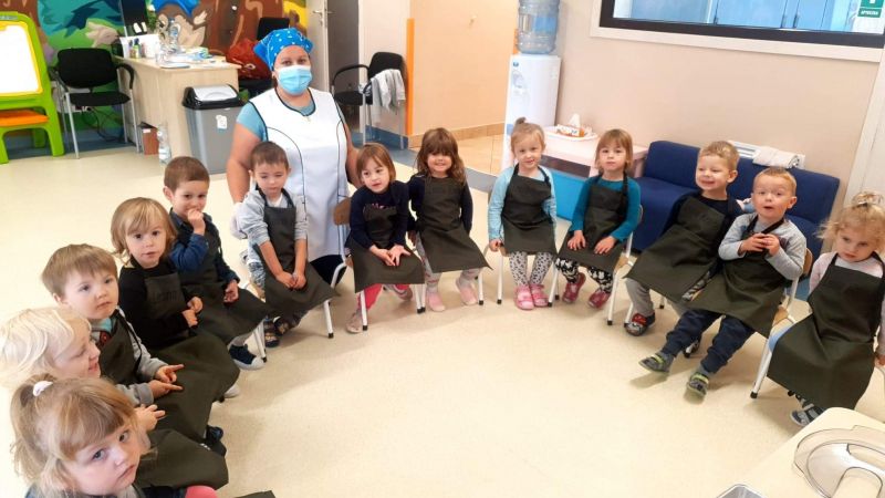 Ochodząc Światowy Dzień Chleba, który przypada w kalendarzu na 16sty dzień pażdziernika w grupie I odbyły się zajęcia kulinarne pod tym tytułem. Wprowadzając dzieci do tematu dnia przedszkolaki obejrzały krótką bajke edukacyjną "Od ziarenka do bochenka" i dowiedziały się skąd się bierze chleb. Poznały również trudny zawód piekarza i poznały specyfikę pracy w piekarni. Podczas zajęc praktycznych zrobiony został chleb według sprawdzonego przepisu. Dzieci uważnie śledziły etapy łączenia składników, a na koniec odbyła się wspólna degustacja.