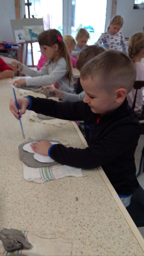 Dzieci z grupy IV były na świątecznych warsztatach ceramicznych w Pracowni Ceramicznej Zapole prowadzonej przez Panią Jolantę Czuksanow. Wizyta w pracowni dostarczyła dzieciom wiele nowych doświadczeń w spotkaniu ze sztuką. Przedszkolaki miały okazję obejrzeć ciekawe wnętrza i wyposażenie pracowni, podziwiać piękne wyroby rękodzielnicze , a przede wszystkim samodzielnie wykonać z gliny ozdobę wielkanocną. Chociaż każdy pragną zabrać swoją pracę do domu, tak się jednak nie stało. Nasze rękodzieła pozostały, by mogły być poddawane kolejnym zabiegom ceramicznym tj. suszeniu i wypalaniu. Gotowe ozdoby trafią do właścicieli jeszcze przed świętami!